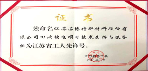 此次获得江苏省“工人先锋号”荣誉称号,再次体现了我公司在行业中的先锋地位。